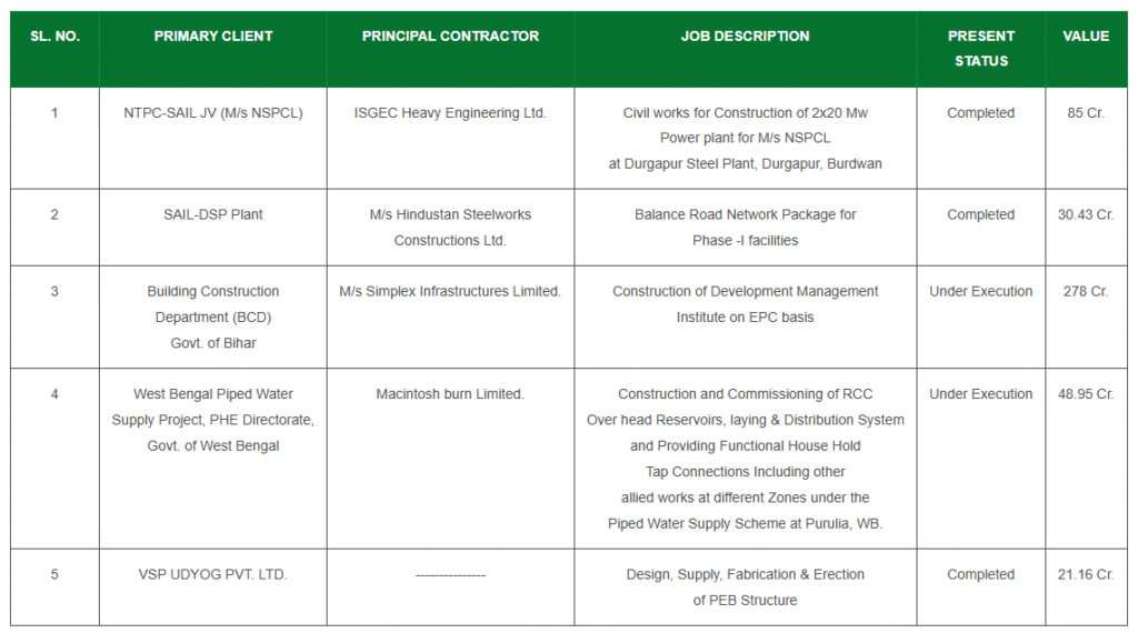 - TIPL bagged its second Infra Project from ISGEC/NSCPL at DSP for civil works of 2×20 mw Power Project and it is under implementation.